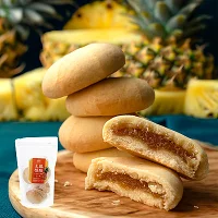 ポイント:バターとアーモンドプードルを使用したクッキー生地で、酸味の効いた甘さ控えめの自家製パイナップル餡を包みました。